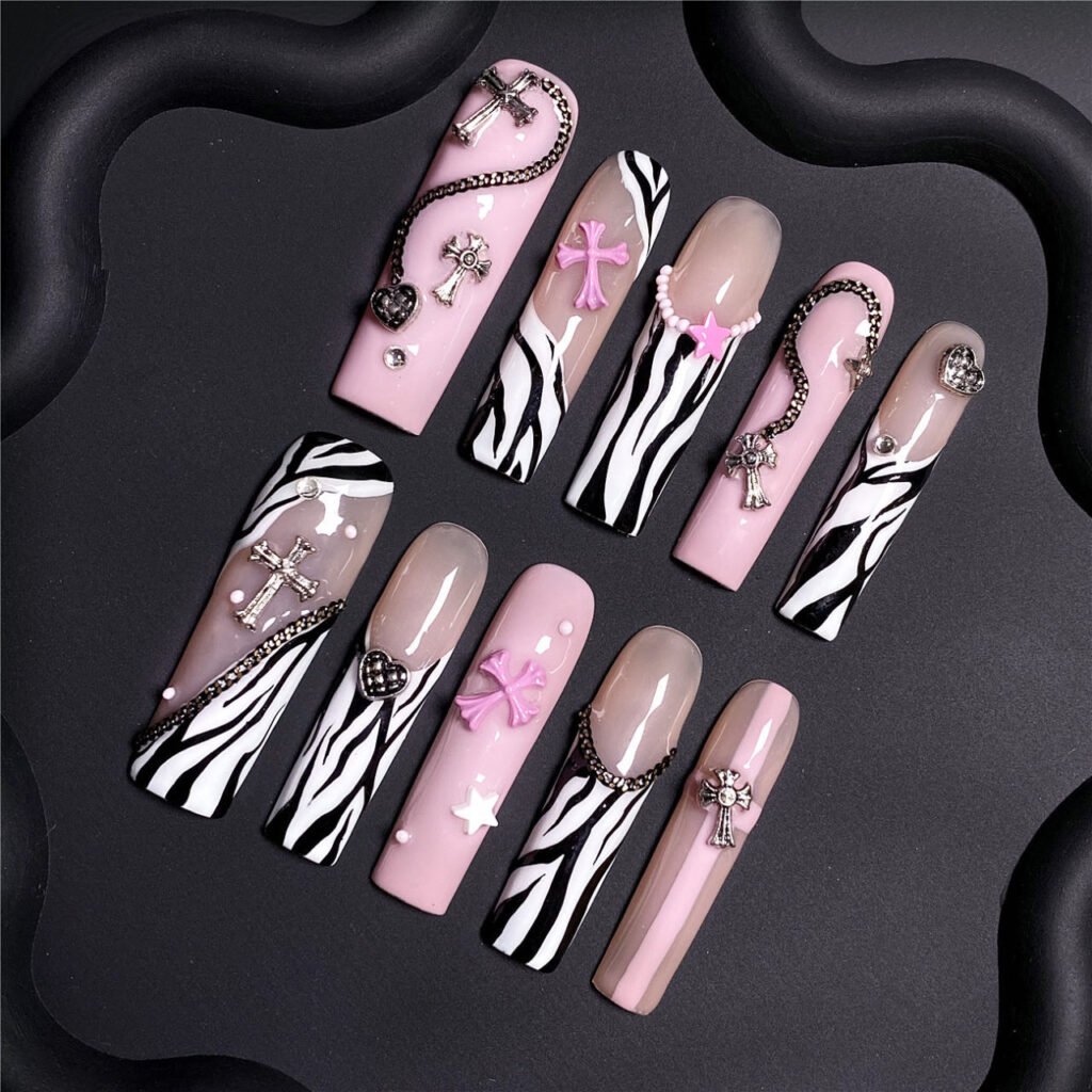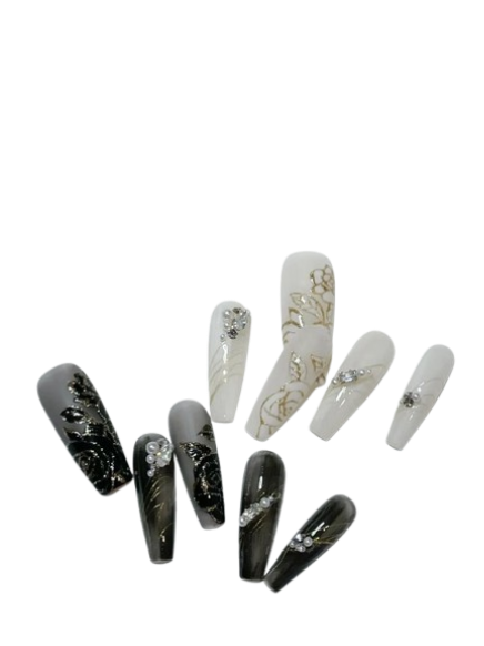As shown in description! Easy to apply and sizes fit my nails (I have smaller sized nail beds). Filed down for a sporty oval finish